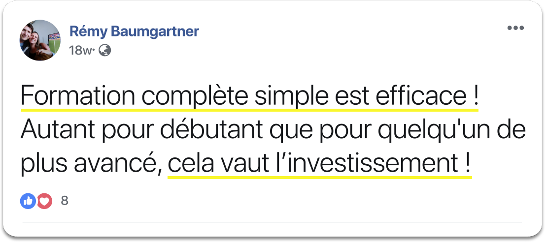 En tant que membre de la formation, tout le contenu vidéo actuel et futur de la formation te sera accessible à vie !